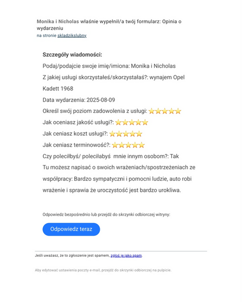 Cennik zawiera kierowcę, kwiaty i drewniane tablice jak na materiale . Nie wypożyczamy auta do samodzielnej podróży ze względu na jego wagę historyczną i dbałość o stan techniczny.